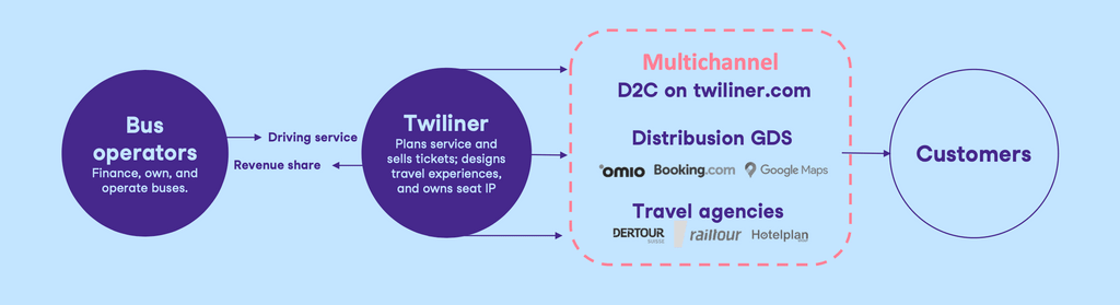 Gewinnverteilung: Partner erhalten Fixkosten Gewinnanteil X, Twiliner behält den Rest. Dieses Asset-light-Modell ist hochskalierbar und ermöglicht attraktive EBITDA-Margen.