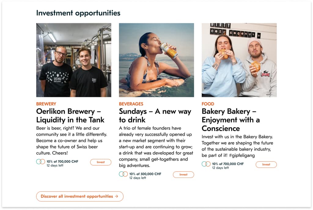 On our platform, you will find a selection of exciting investment opportunities. These are responsible companies with sustainable business models or products currently crowdfunding through OOMNIUM or launching a campaign soon.